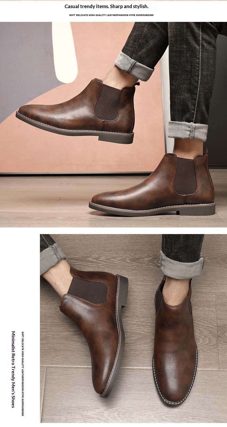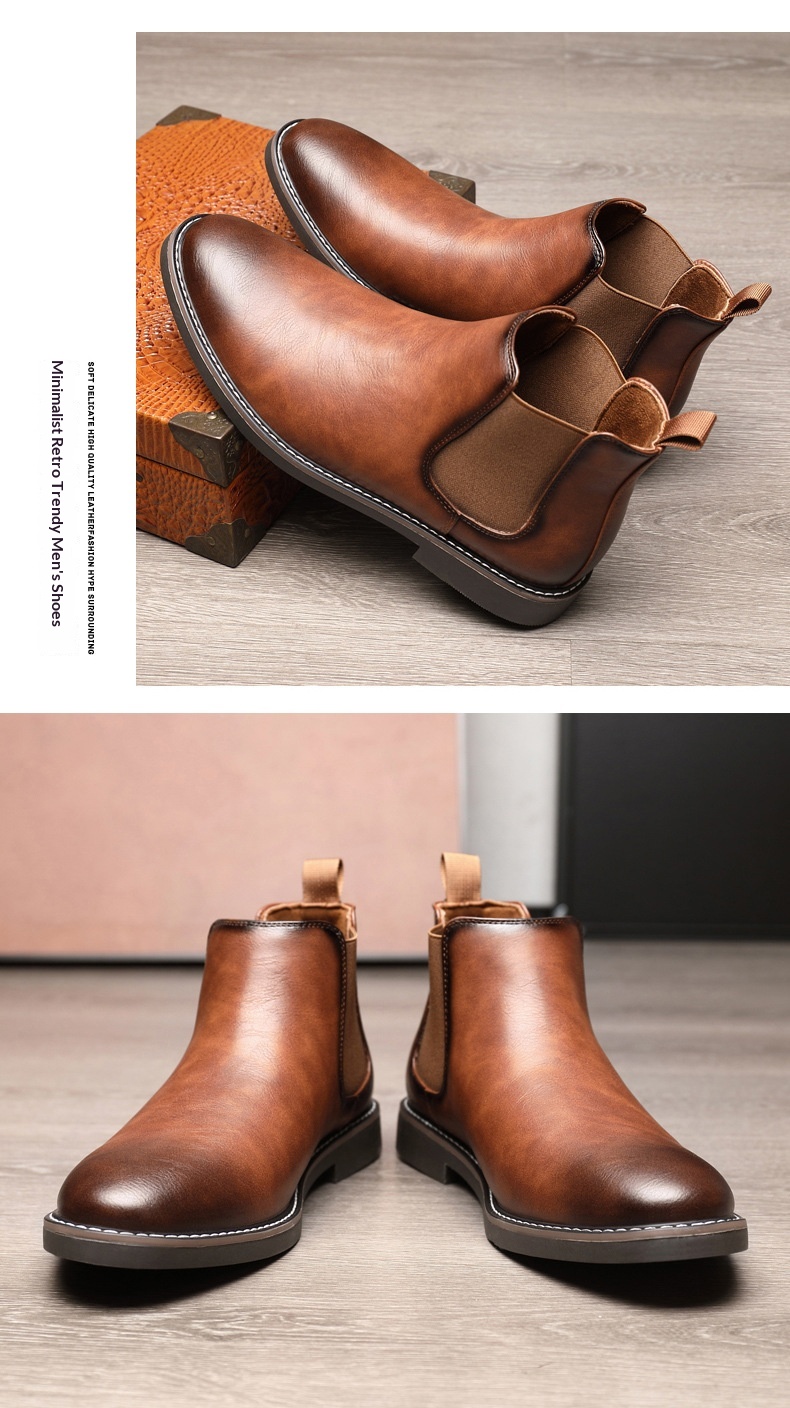 Youth Pointed Ankle Boots Large Size Men's Leather Boots