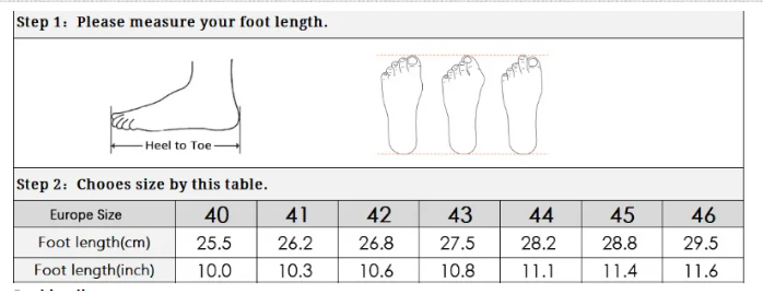 Size: 38, 39, 40, 41, 42, 43, 44, 45, 46, 47